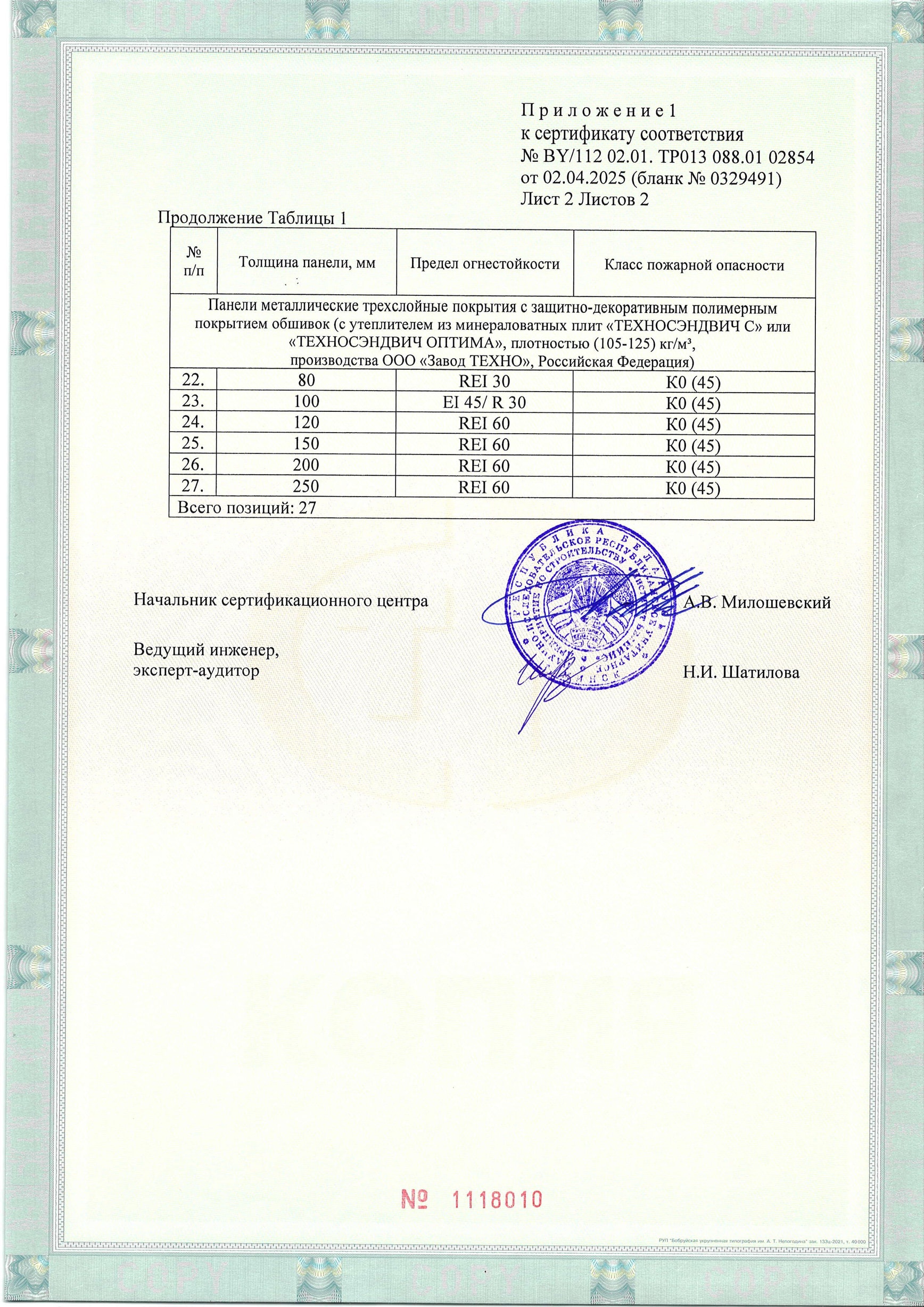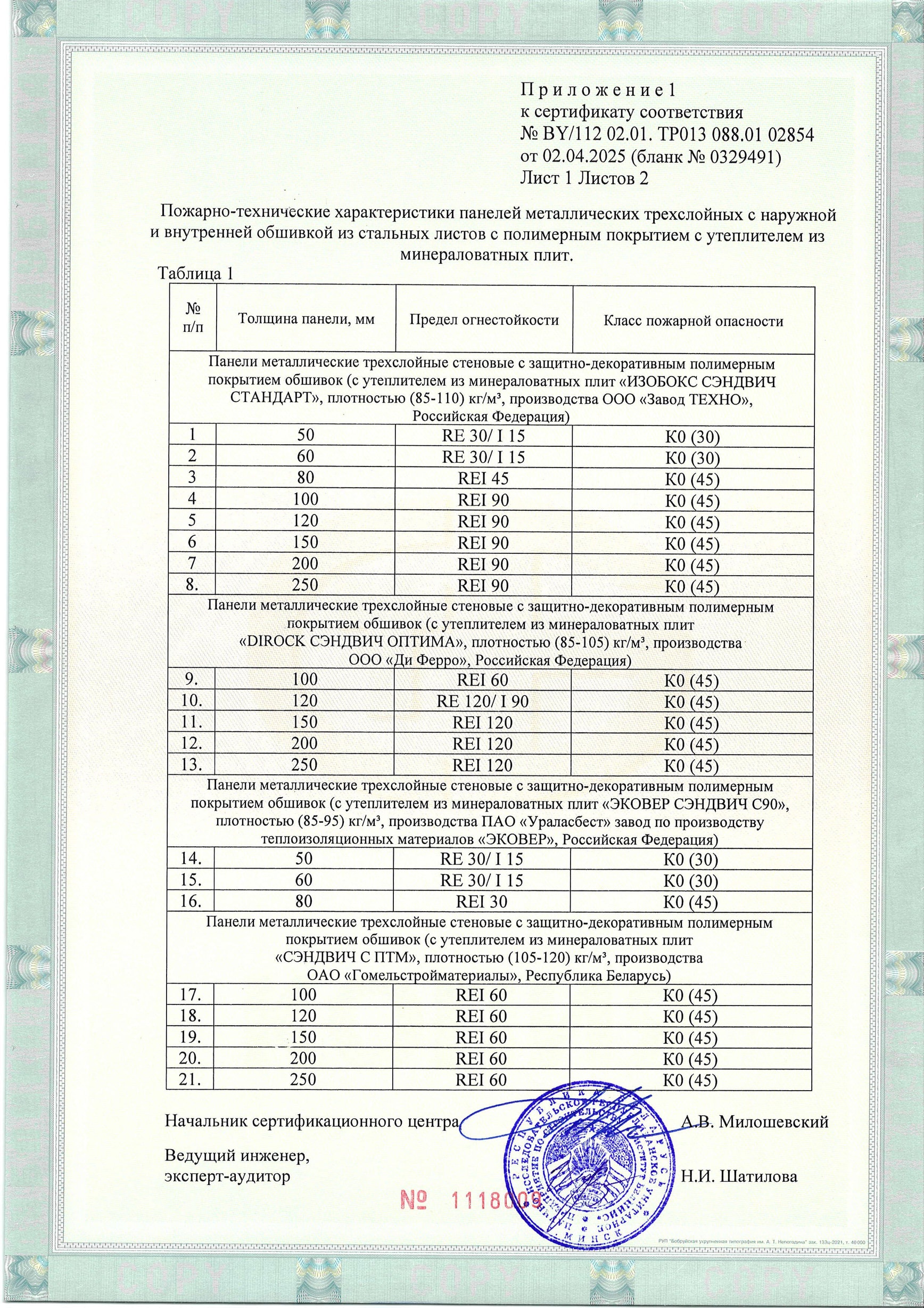 Сертификат соответствия сэндвич-панелей с утеплителем из минераловатных плит